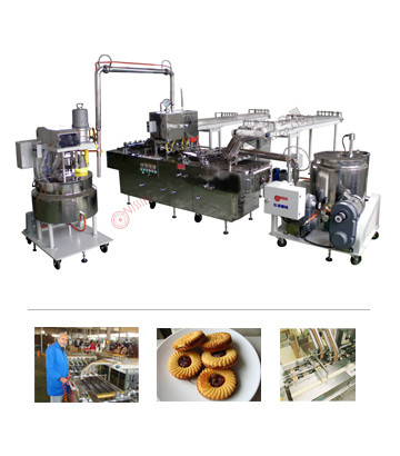 該機是中日合資產品,是將奶油、果醬、巧克力等夾入餅干的高速自動設備,全套日本技術,日本專家長駐共同管理制造。該機是生產中、高檔夾心餅干的理想設備。 主要技術參數:? 型號 MM-824 MM-823 生產能力 125-630枚/min 250-1200枚/min 主機尺寸 LXWXH(mm): 2300*500*1700 LXWXH(mm): 2600*600*1700 總占地面積 15m2 17m2 裝機總容量 15kw 15kw 總重量 1640kg 1800kg